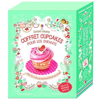 Ce superbe coffret contient tout ce qu'il faut pour réaliser d'irrésistibles cupcakes : un livre de recettes, 380 caissettes de deux tailles différentes et 20 jolies décorations, dont des oiseaux et des papillons. Les recettes, abondamment illustrées, sont adaptées aux pâtissiers débutants grâce à des instructions claires et faciles à suivre, étape par étape. Des conseils et des astuces encourageront les enfants à faire preuve d'imagination dans le choix des décorations et des ingrédients. Ce superbe coffret contient tout ce qu'il faut pour réaliser d'irrésistibles cupcakes : un livre de recettes, 380 caissettes de deux tailles différentes et 20 jolies décorations, dont des oiseaux et des papillons. Les recettes, abondamment illustrées, sont adaptées aux pâtissiers débutants grâce à des instructions claires et faciles à suivre, étape par étape. Des conseils et des astuces encourageront les enfants à faire preuve d'imagination dans le choix des décorations et des ingrédients. Avec ce coffret conçu pour les débutants, son livre de recettes à la fois fiables et faciles à suivre, ses jolies caissettes et décorations, les enfants seront fiers de réaliser de délicieux cupcakes joliment décorés et de les faire goûter à leur entourage. Un superbe cadeau à offrir à tous les gourmands ! Un livre à proposer aux librairies, aux boutiques de cadeaux ainsi qu'aux magasins d'articles de cuisine. ATTENTION ! Ne convient pas aux enfants de moins de 36 mois en raison des petites pièces. Risque de suffocation par ingestion. Les décorations et les caissettes fournies dans ce coffret ne sont pas des jouets et ne sont pas comestibles. Nous recommandons la présence d'un adulte pour superviser les enfants qui font de la cuisine. Coffret produits=64 pages. Tranche d'âges=3 - 8 années. Editeur =Usborne (23 avril 2015). Langue =Français. ISBN-10=140958917X. ISBN-13=978-1409589174. Dimensions du produit=19,2 x 6,2 x 24,4 cm. Moyenne des commentaires client =4.5 étoiles sur 5 2 commentaires client. Classement des meilleures ventes d'AmazonCuisineFamilleSavoir et découverte=340.310 en Livres (Voir les 100 premiers en Livres) .zg_hrsr { margin: 0; padding: 0; list-style-type: none; } .zg_hrsr_item { margin: 0 0 0 10px; } .zg_hrsr_rank { display: inline-block; width: 80px; text-align: right; } n°166 dans Livres > Livres pour enfants > Jeux, arts et création > n°351 dans Livres > Livres pour enfants > n°918 dans Livres > Livres pour enfants >.Les éditions Usborne vous présentent un superbe coffret (bien fini, en carton épais, qui ferme avec des scratchs), contenant, un livret de recettes richement illustrés et avec des photos réalistes voire du pas à pas. Il y a aussi, en plus des recettes variées et faciles, des tas d'idées de décoration des gâteaux. Le coffret contient aussi des caissettes (jolies et nombreuses et de deux tailles) et de petits pics décoratifs. De quoi se lancer dans la réalisation de jolies pâtisseries, seul (à partir de 10 ans) ou en famille.. Le coffret est vraiment très bien fait. Les recettes sont très bien expliquées, bien illustrées. Mes enfants de 7 et 4 ans ont adoré..
